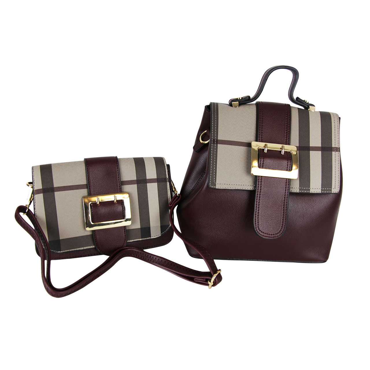 Women s Designer Leather Brown Multi Use Tote Shoulder Backpack With Crossbody 2 Piece Bag Set