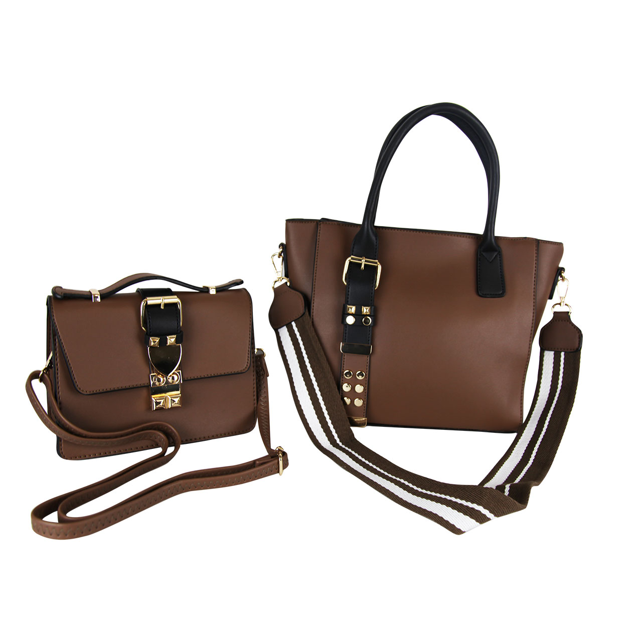 2 Piece Handbag Tote Crossbody Brown Gray Womens Leather Shoulder Bag Set With Straps