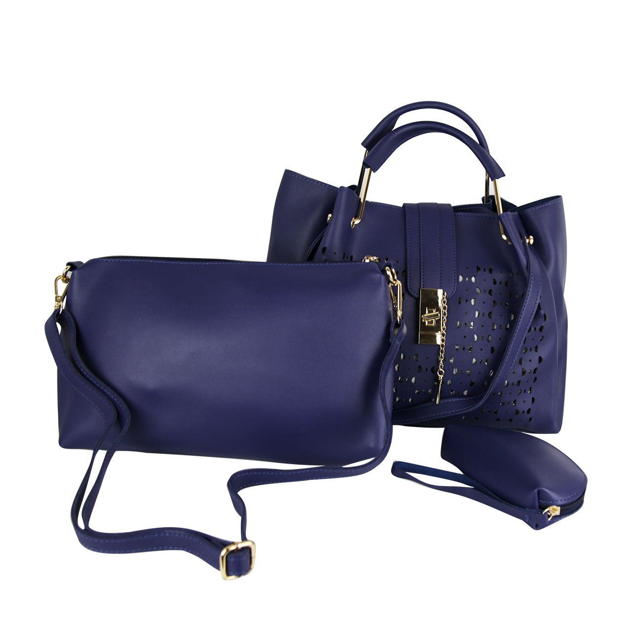 PU Leather Teal Blue Green 3 Piece Purse Handbag Set For Women With Shoulder Strap And Handles