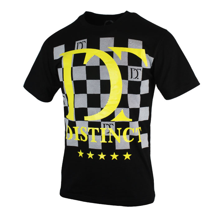 Men s Black Short Sleeve T Shirt Block Printing With Yellow Distinct Star Design