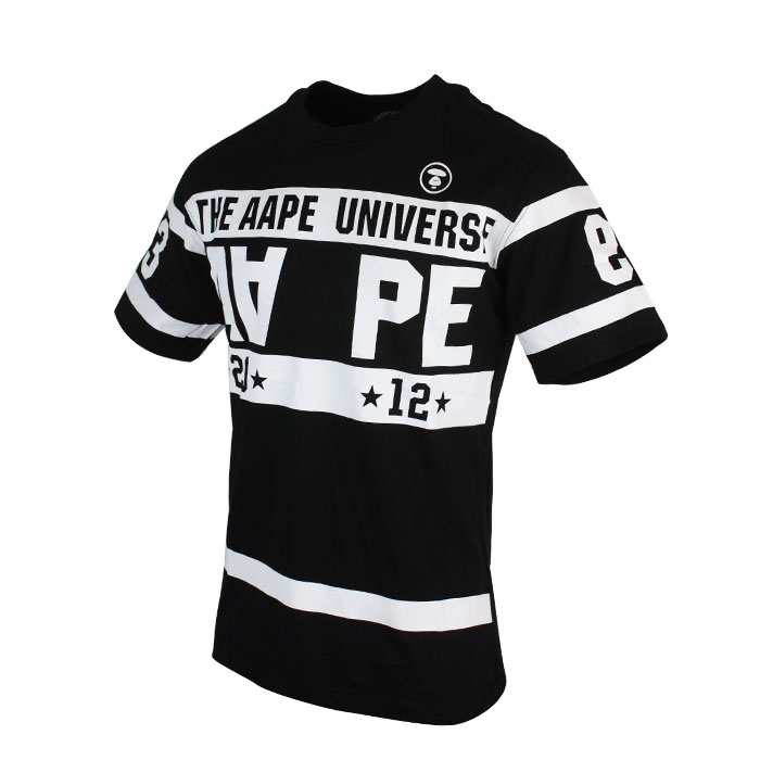 Men s Casual AAPE Half Sleeve Black With White Designer T Shirt