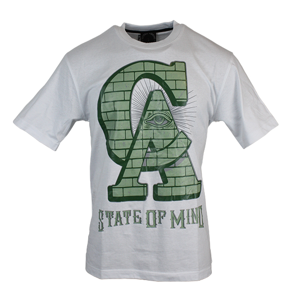 State Of Mind Green Printed Crew Neck White T Shirt Men