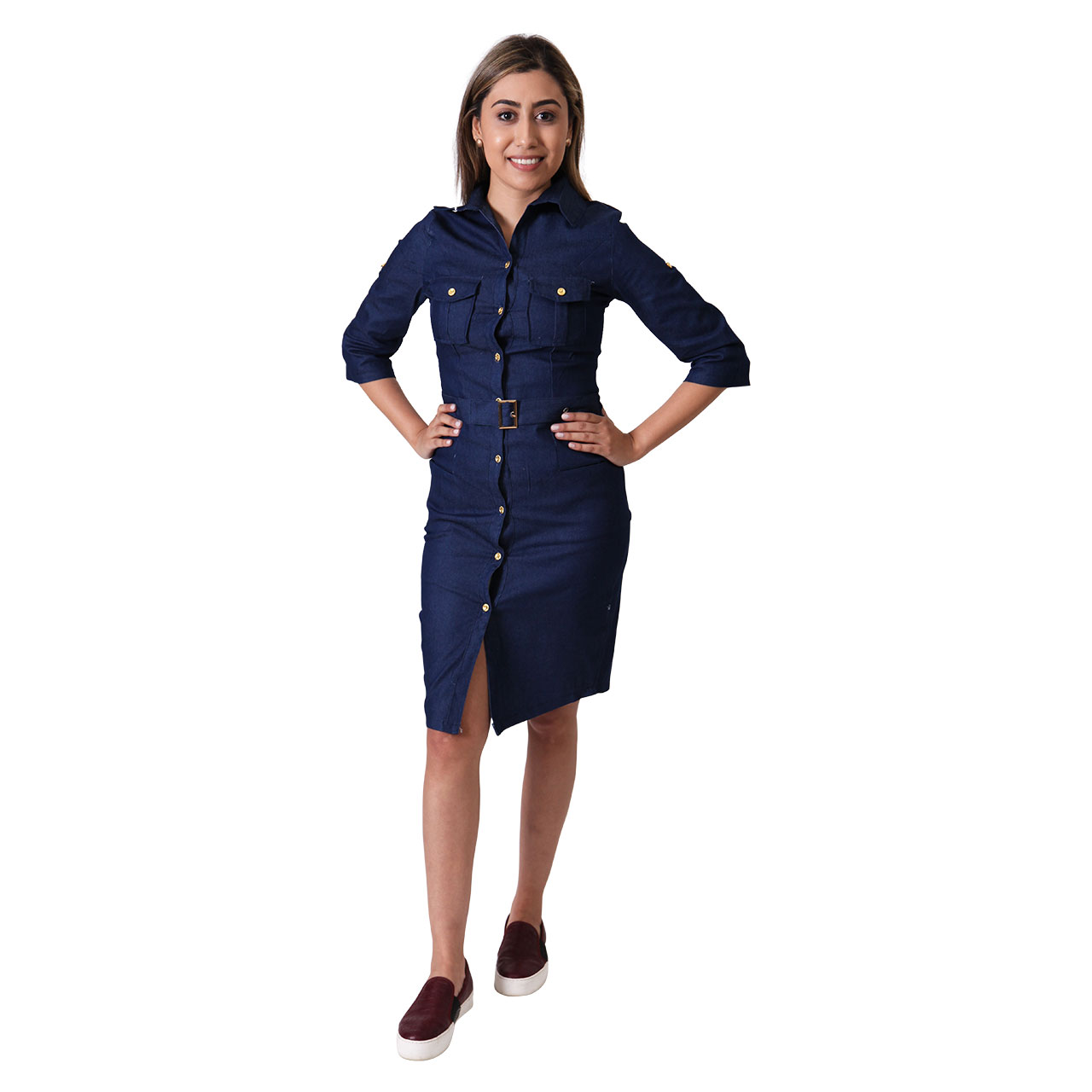 Women s Dark Royal Navy Blue Bodycon Dress 3 4 Sleeve Vintage Casual Collared Button Up Dress