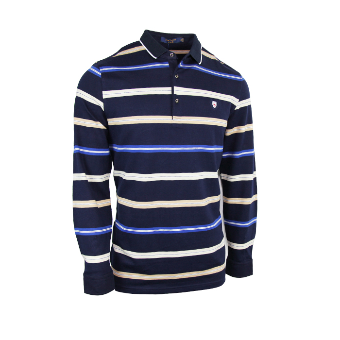 Dark Blue With White Mens Long Sleeve Striped Polo Shirt