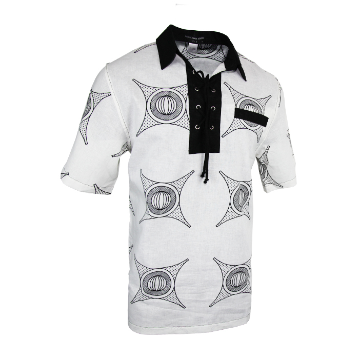 Men s Short Sleeve White Funky Black Collar Polo Shirt