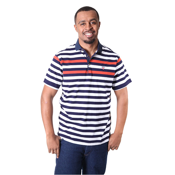 Zeekas Mens Navy Blue And White Striped Polo Shirt Short Sleeve With Bottom