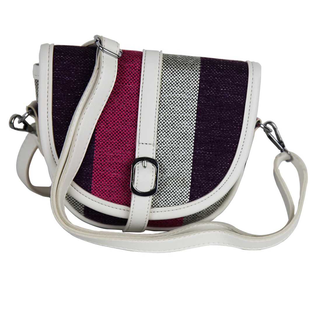 Women s Front Flap Belt Closure Sling Satchel Striped Multi Color Crossbody Bag With White Adjustable Shoulder Straps