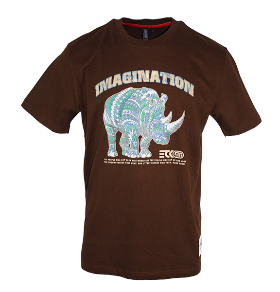 Casual Fit Rhino Print Men s Brown T Shirt