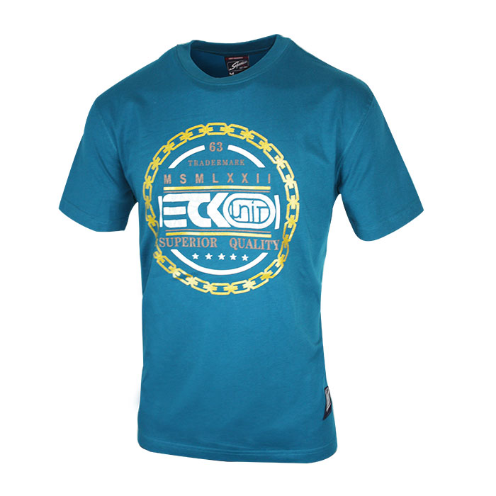 Dark Sky Blue T Shirt For Man Yellow With White Printed Design