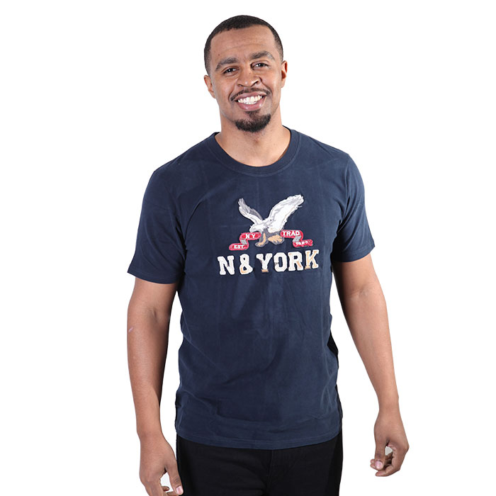 Men s Navy Blue High Neck Half Sleeve T Shirt With Eagle Design