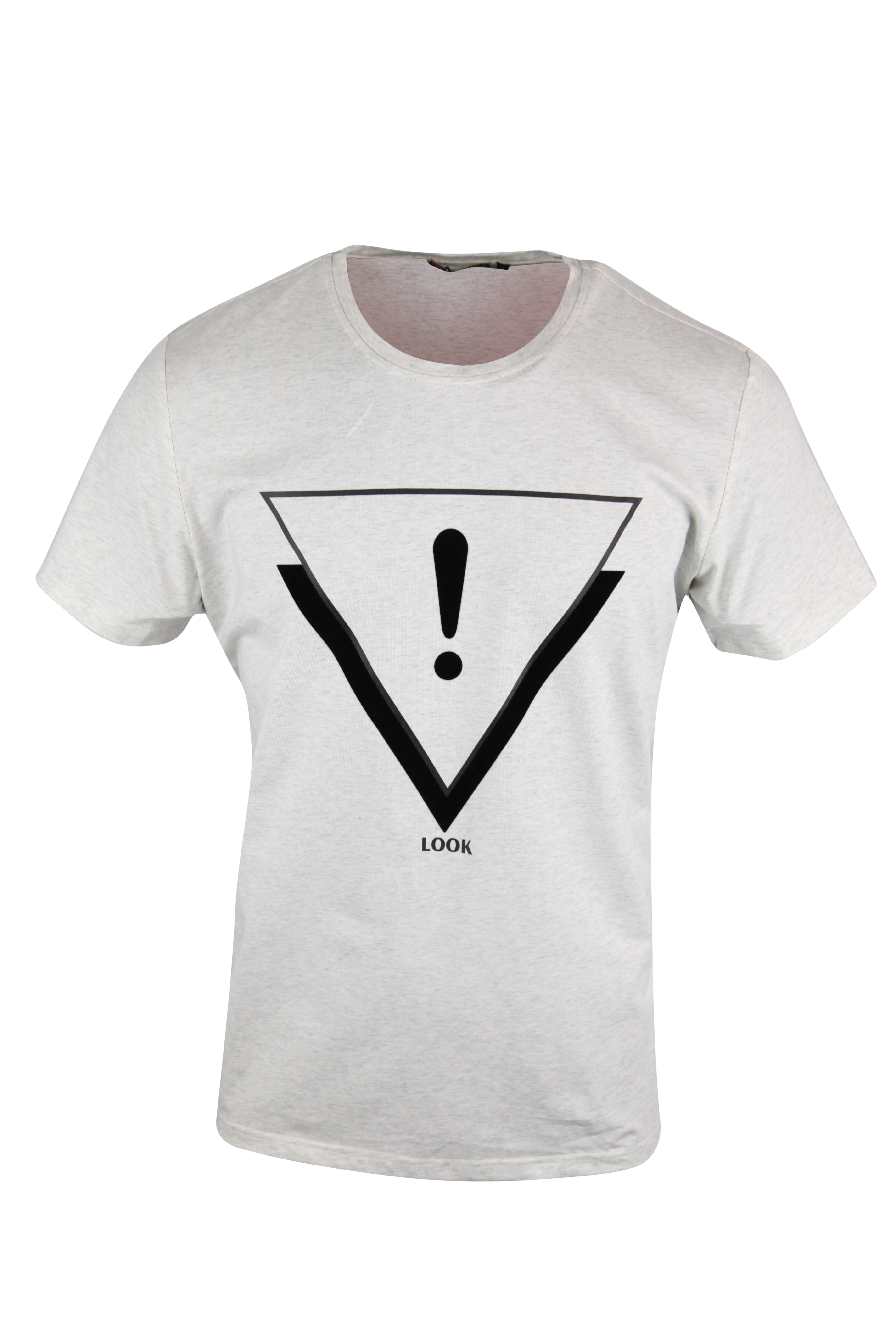 Men s Round Neck Exclamatory Look Print Design Ash Colored T Shirt With Short Sleeves
