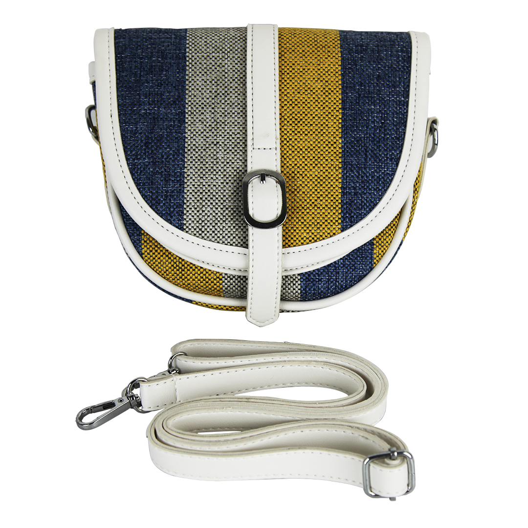Women s Classic Multicolor Crossbody Bag Blue Ash Yellow With Adjustable White Straps