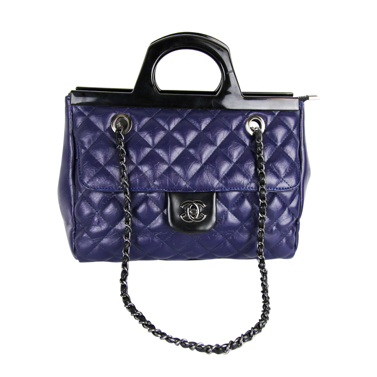 Classic Flip Top Handle Women s Blue Black Satchels Bag With Chain Strap