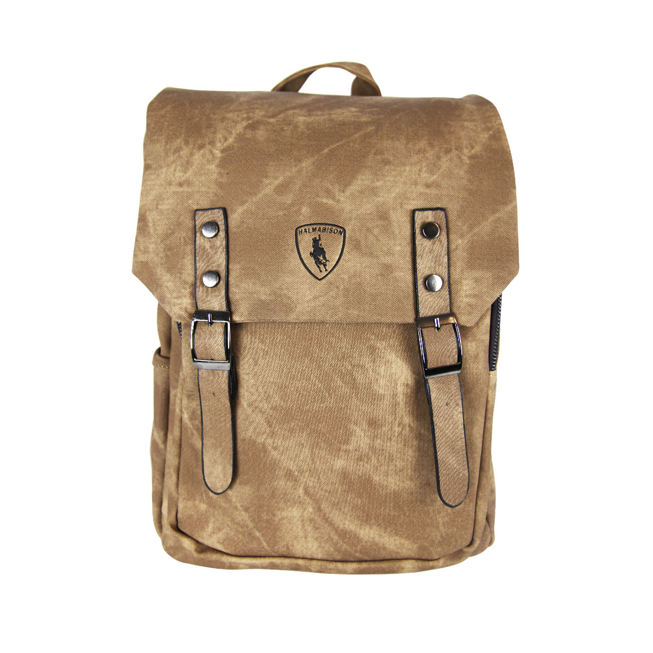 Women Solid Leather Double Buckle Strap Travelling Brown Backpack