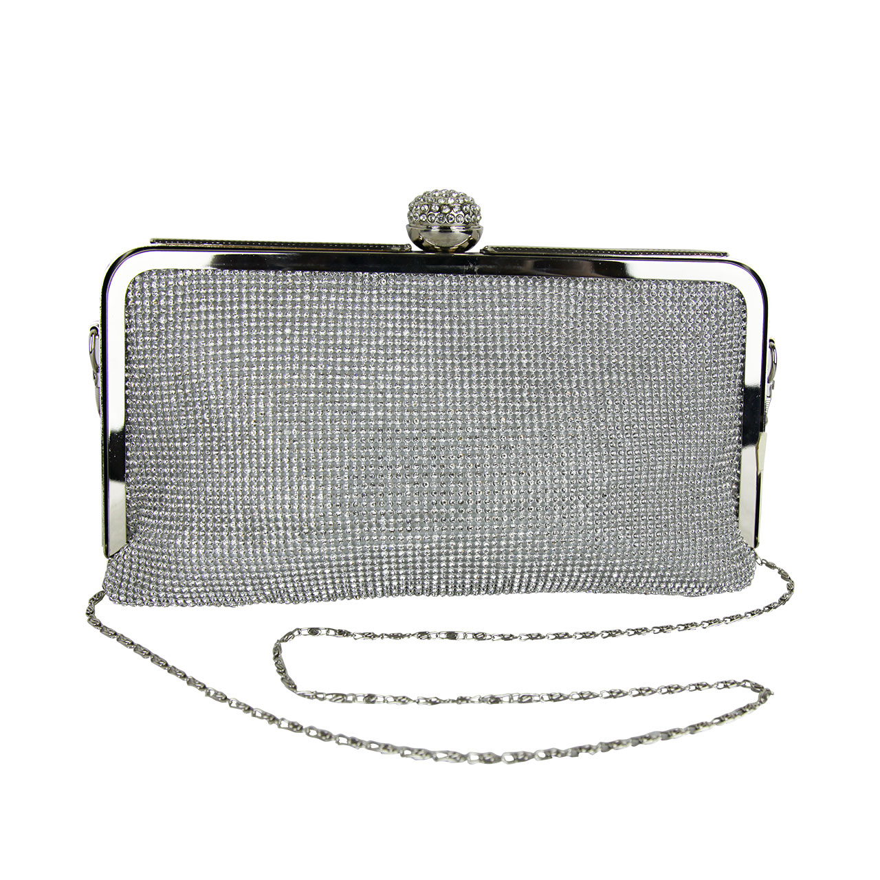 Women Sparkly Silver Purse Clutch Glitter Evening Bag With Chain