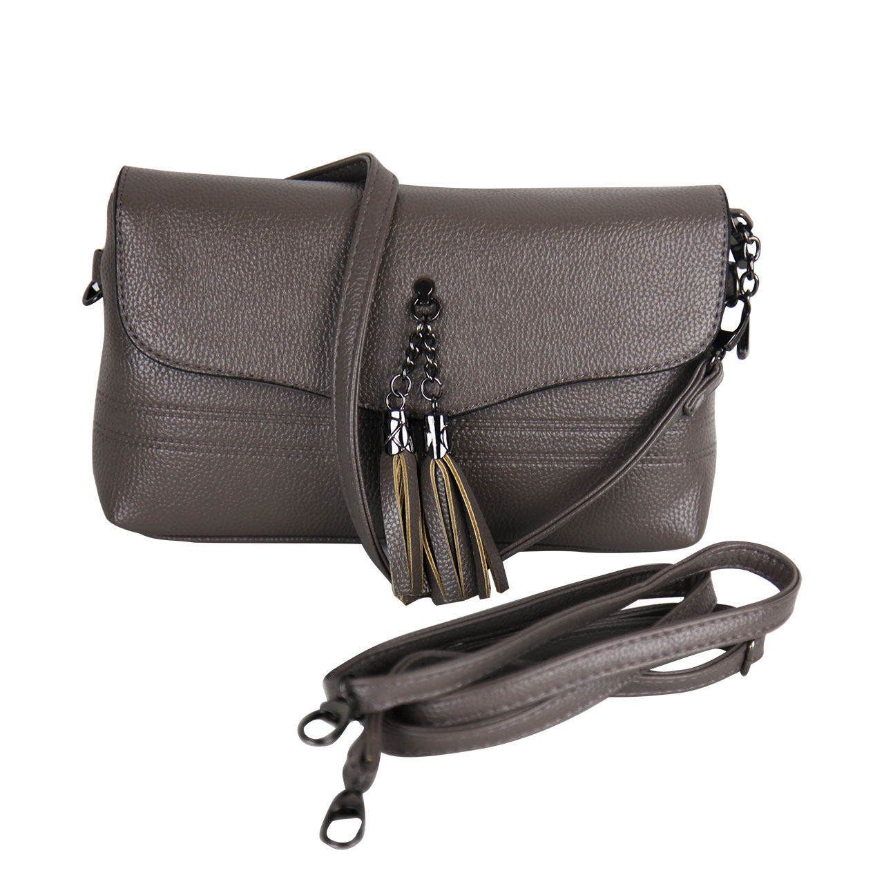 2 Piece Handbag Tote Crossbody Brown Gray Womens Leather Shoulder Bag Set With Straps