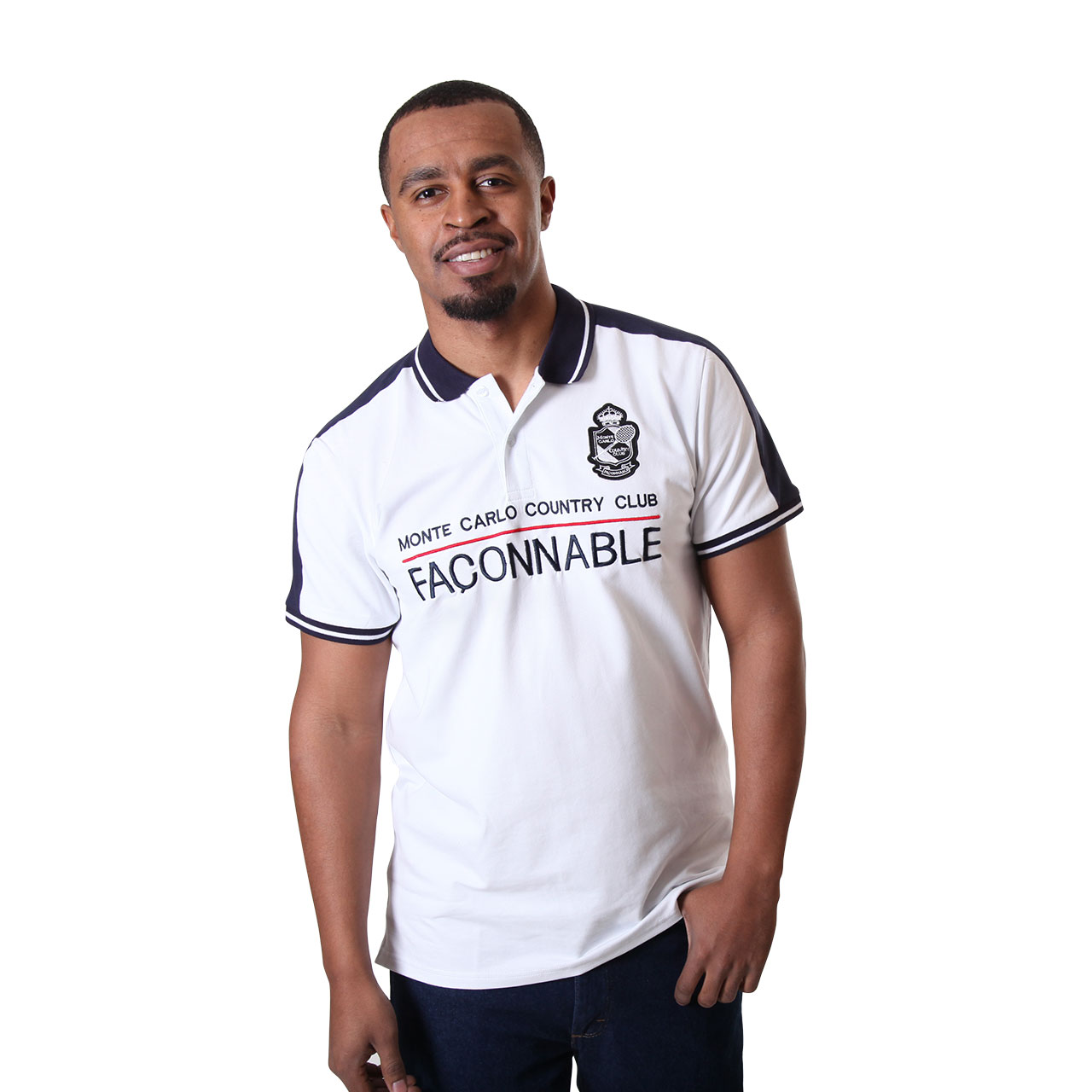 Men s Short Sleeve White With Navy Blue Collar Polo Shirt
