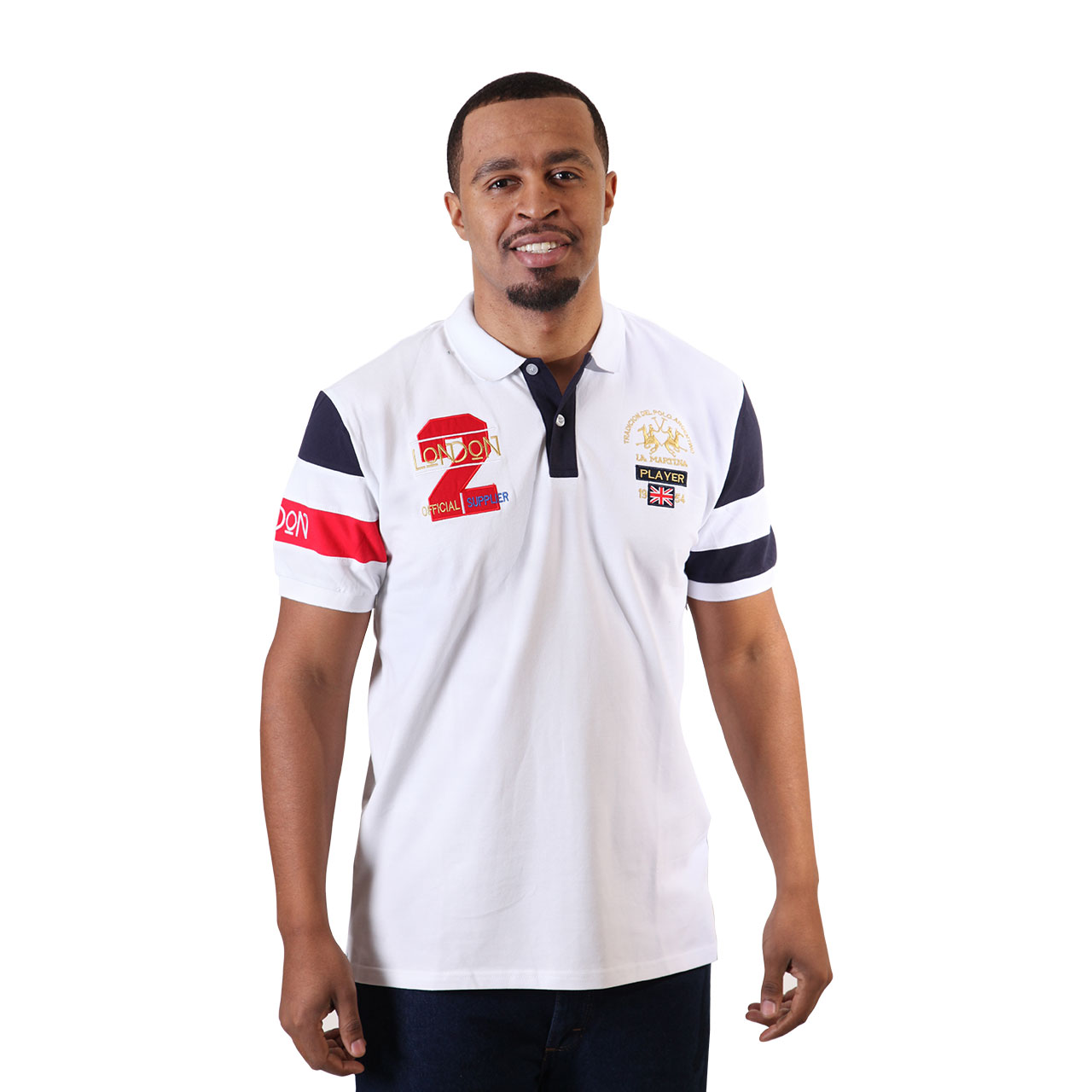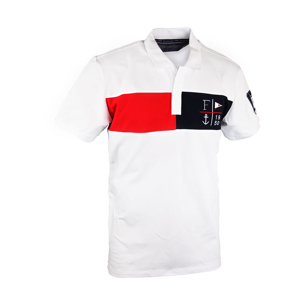 Men s Red And Black Patch Designer Collar T Shirt White
