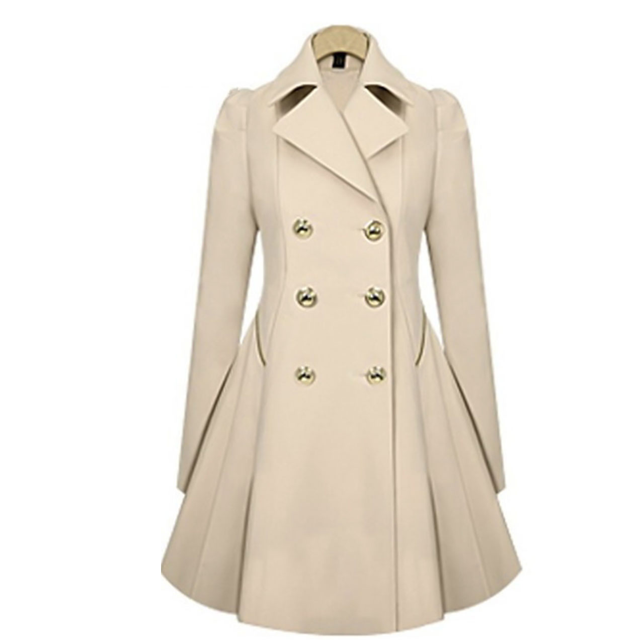 Long Spring Jacket Fold Over Collar Plain Trench Coat Women Khaki Dress