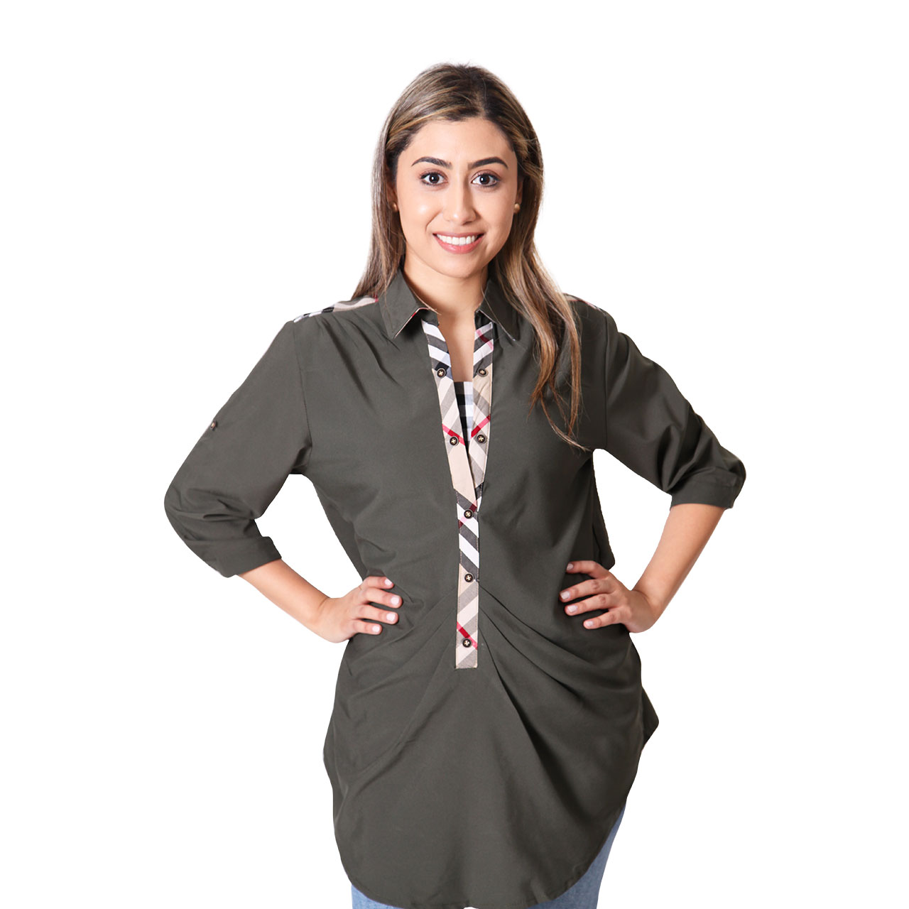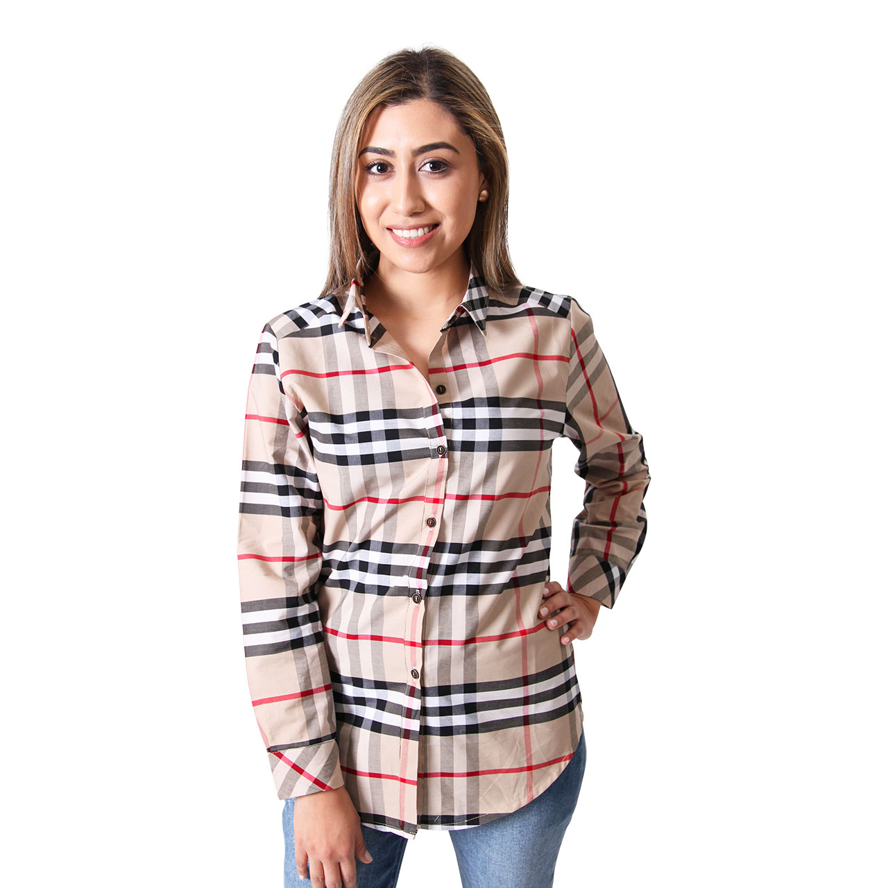 Women s Long Sleeve Multicolor Plaid Shirt Flannel Cotton Print Twill Roll Tab