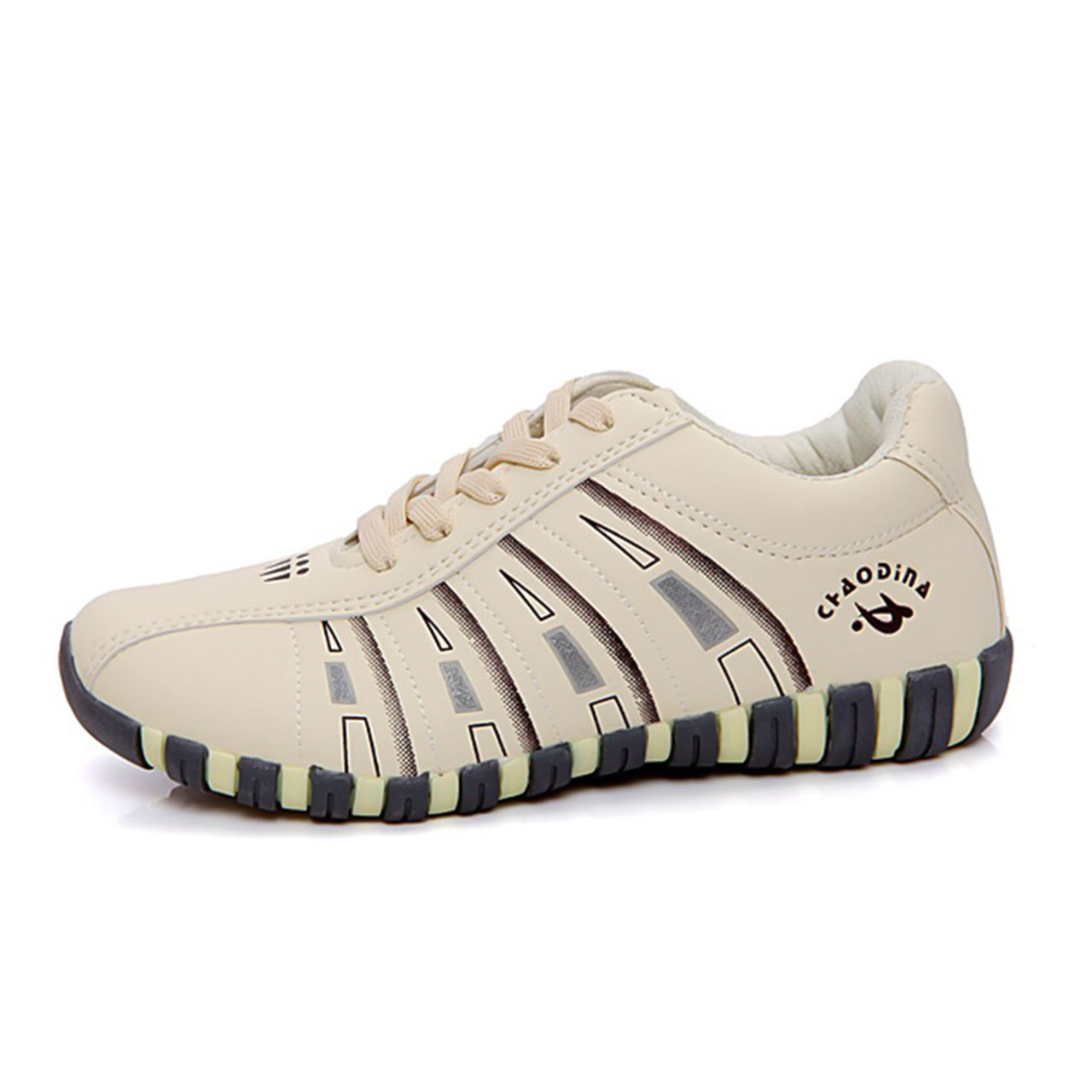 Beige Flat Heel Lace Up Sneakers Comfortable Walking Womens Shoes