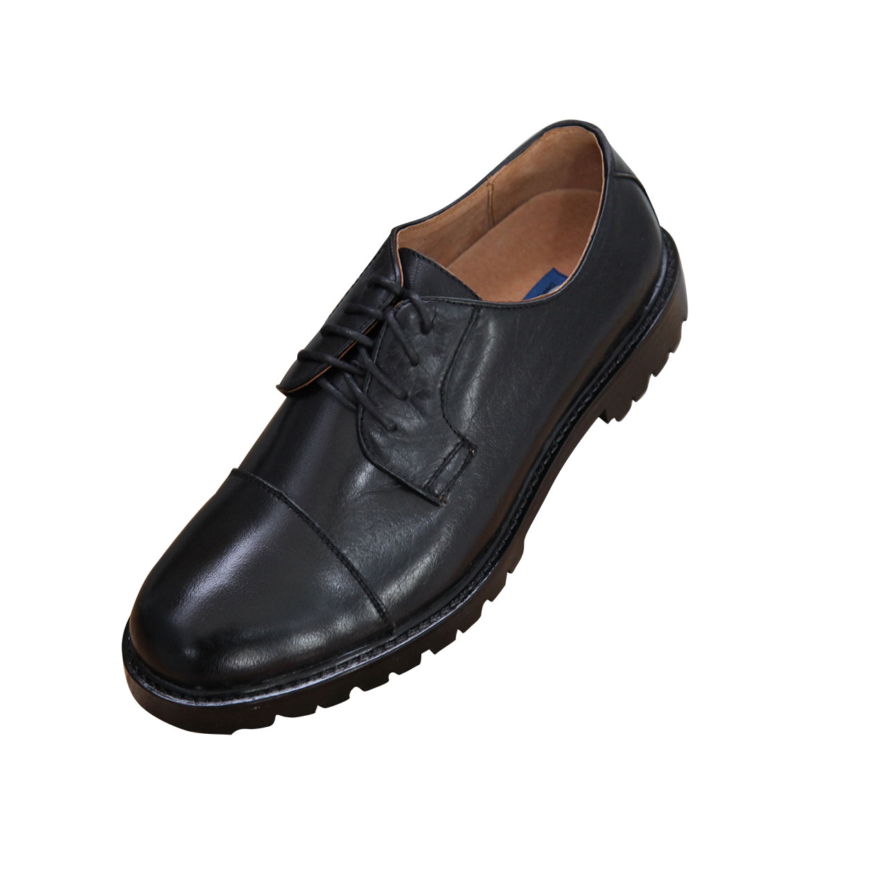Classic Plain Cap Toe Lace Up Genuine Leather Black Oxford Shoes Mens