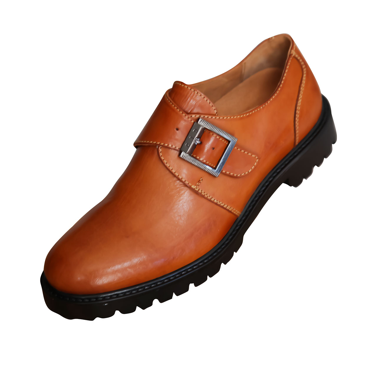 Wingtip Genuine Leather Dress Mens Brown Single Monk Strap Shoes