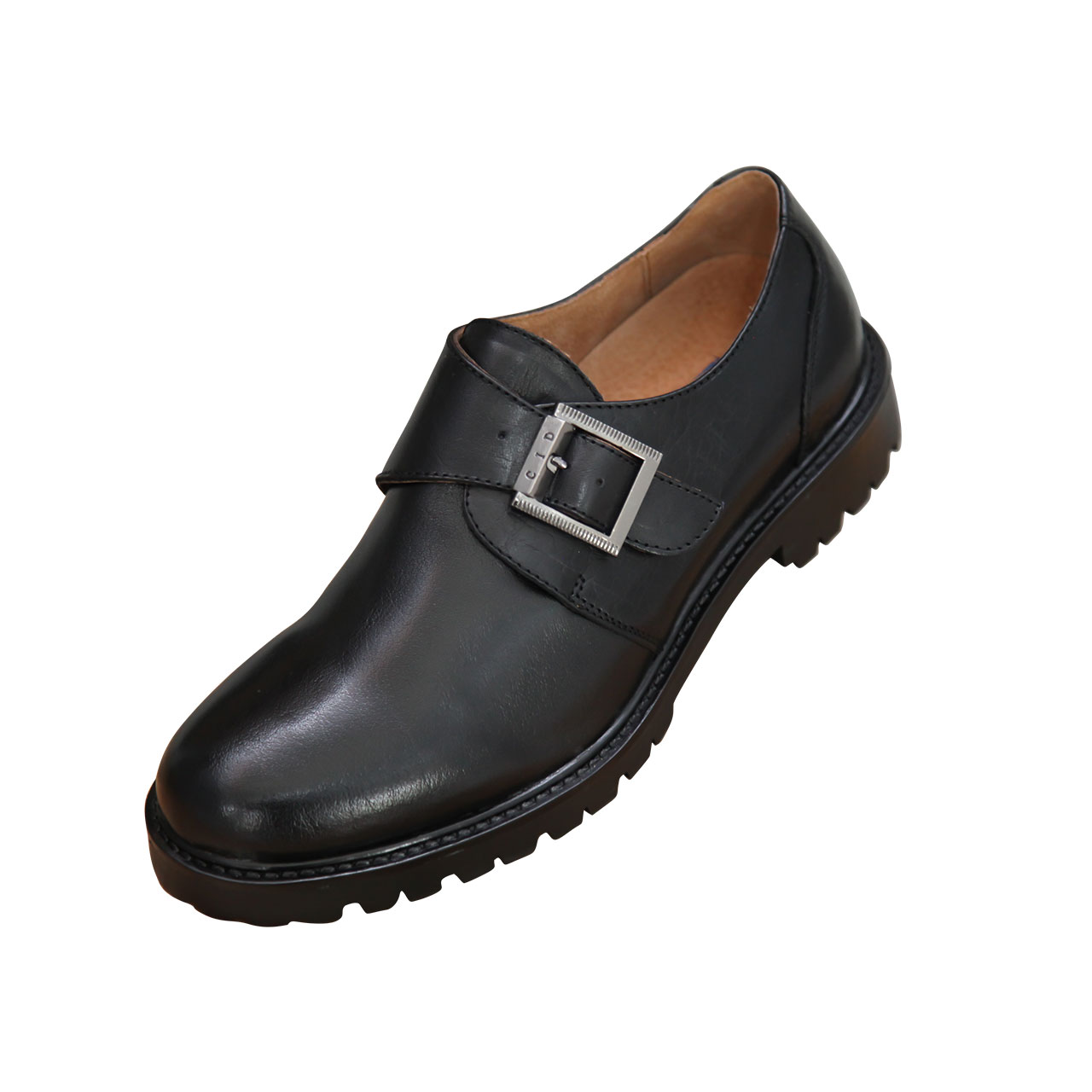 Closed Toe Dress Shoe Office Genuine Leather Black Single Monk Strap Mens Shoes