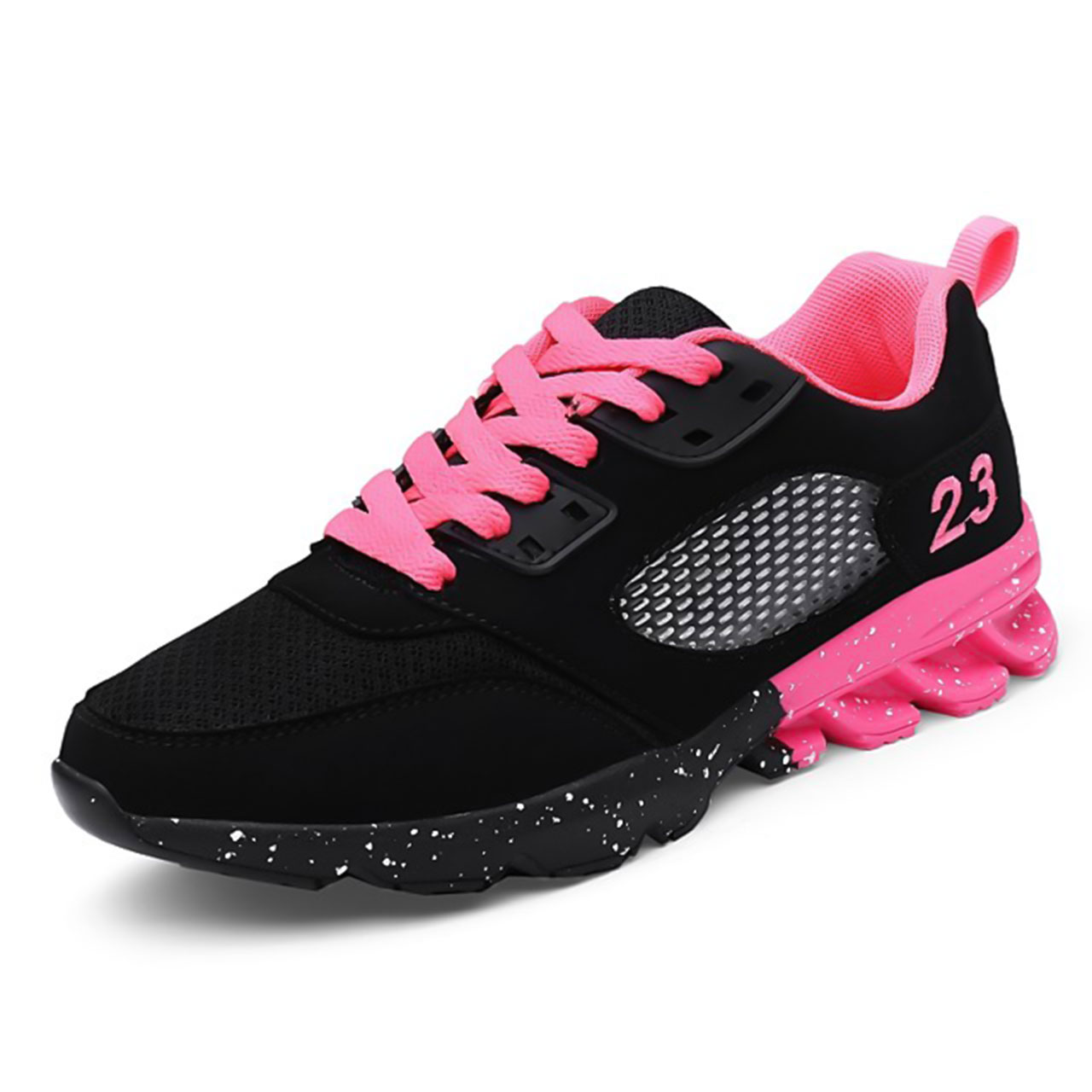 Women s Lace Up Pink With Black Athletic Walking Running Platform Comfort Shoes